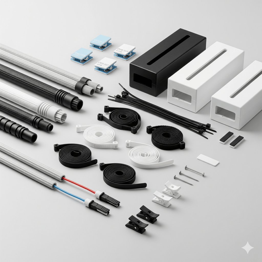 They include reusable ties, clips, and sleeves so you can route, label, and protect cables—reducing clutter, preventing tangles, and making future upgrades or moves simple and stress-free.